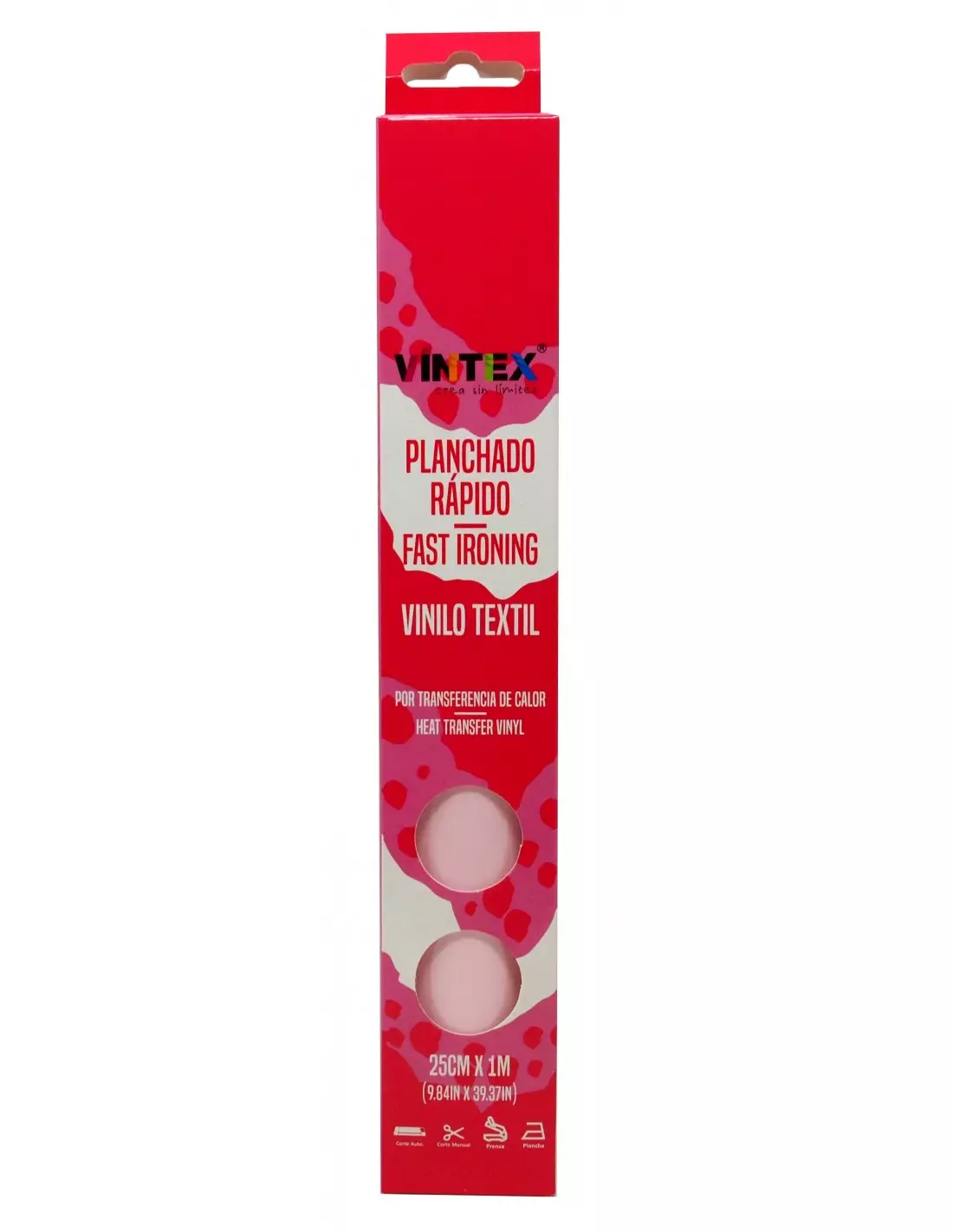 Vinilo textil planchado rápido VINTEX. Una de las series más famosas y utilizadas de Vintex. Especial para tejidos delicados o para realizar proyectos de manera rápida. Compatible con diseños a capas y combinable con otras series de Vintex ¿conoces la Serie Bronze? Medidas: 25 cm ancho x 1m largo. Apto para plancha doméstica o prensa térmica. Compatible con cualquier plotter de corte. Especial para detalles pequeños. Aplicable sobre algodón, poliéster y tejidos con mezcla. Disponible en 48 colores sólidos y 4 metalizados.