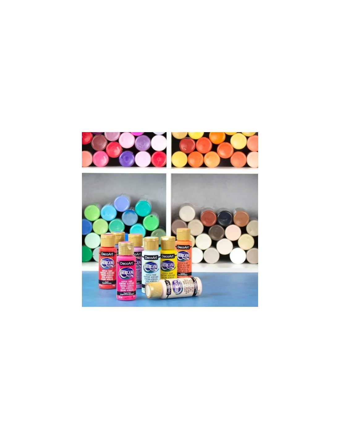 Las pinturas acrílicas de DecoArt Americana ofrecen una excelente cobertura en una sola capa. Con un acabado saturado ideal para artistas profesionales, artesanos y estudiantes. Pueden utilizarse en casi cualquier superficie. Consistencia suave y acabado mate con posibilidad de barnizar para cambiar su terminación gracias al barniz glossy o satinado. Alta pigmentación. Libre de ácido. Pintura al agua acrílica, no tóxico. Disponible en 49 colores mate. Se puede limpiar con agua y jabón mientras está húmedo.