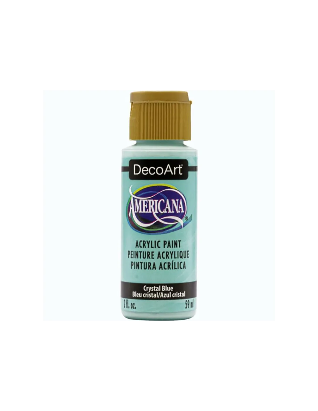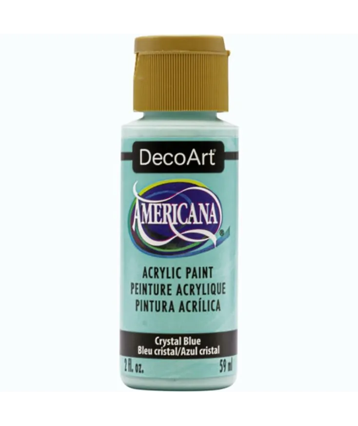 Las pinturas acrílicas de DecoArt Americana ofrecen una excelente cobertura en una sola capa. Con un acabado saturado ideal para artistas profesionales, artesanos y estudiantes. Pueden utilizarse en casi cualquier superficie. Consistencia suave y acabado mate con posibilidad de barnizar para cambiar su terminación gracias al barniz glossy o satinado. Alta pigmentación. Libre de ácido. Pintura al agua acrílica, no tóxico. Disponible en 49 colores mate. Se puede limpiar con agua y jabón mientras está húmedo.