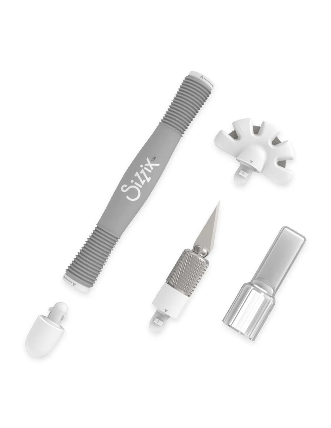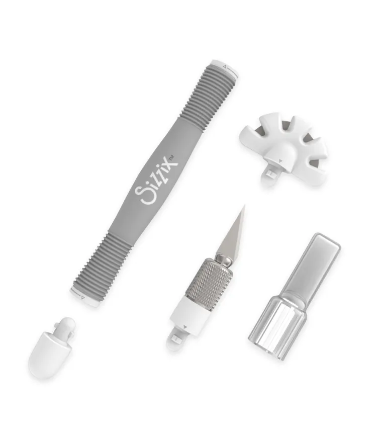 El trabajo correcto exige la herramienta adecuada. En el núcleo del kit de inicio de herramientas múltiples Sizzix se encuentra un mango de doble cara que admite una variedad de cabezales de herramientas intercambiables. (Se proporciona una tapa de cierre si solo se utiliza un lado del cabezal de la herramienta). Esta fácil personalización de la herramienta es lo que permite que el kit de inicio de herramientas múltiples sea una posible solución de herramientas artesanales todo en uno.