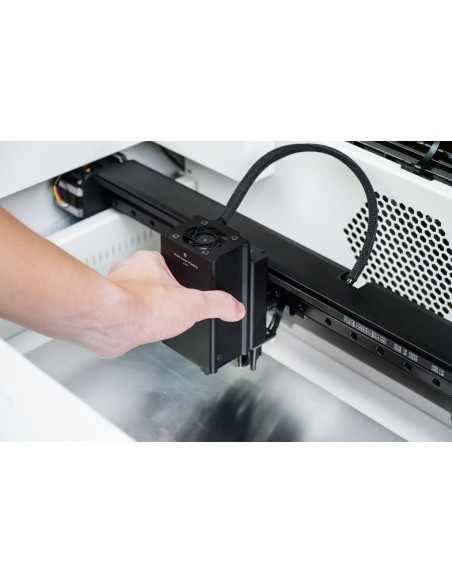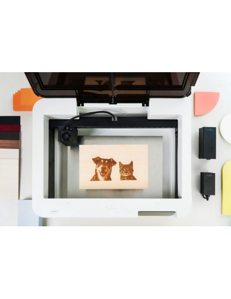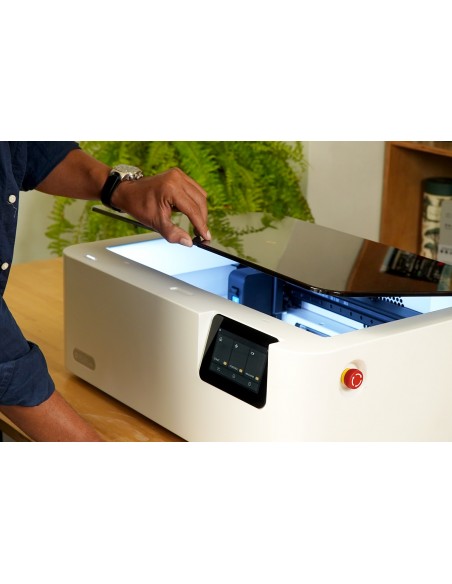 Con su tecnología por módulos podrás Cortar y Grabar diferentes materiales como madera, corcho o metacrilato opaco, entre otros, utilizando el módulo de láser de DIODO 10W/20W. Grabar Metal con el módulo infrarrojo o Imprimir a todo color con tintas ecosolventes con su módulo de impresión directa. Cámara integrada 8 MP que te permitirá colocar tus diseños sobre los distintos materiales de manera fácil, precisa y rápida. Asistente de aire incorporado para obtener mejores resultados y facilitar el mantenimiento.