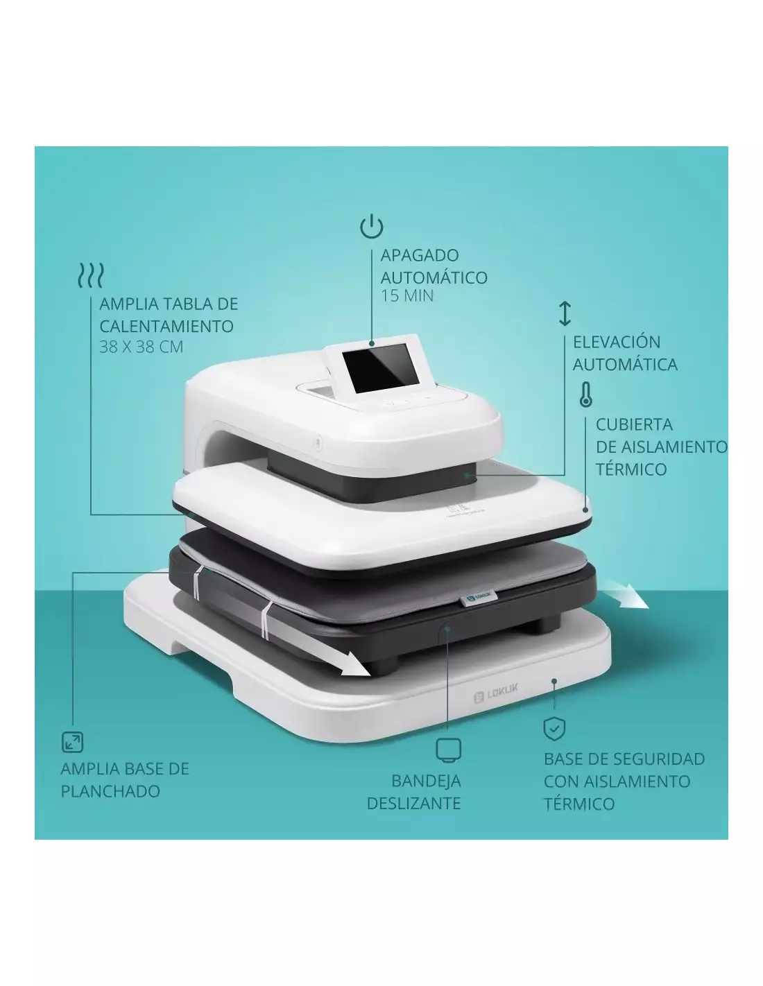 La LOKLiK ImPress™ Mini 3 es una plancha transfer compacta, versátil y portátil que permite crear diseños personalizados en superficies planas y curvas de forma fácil y divertida.