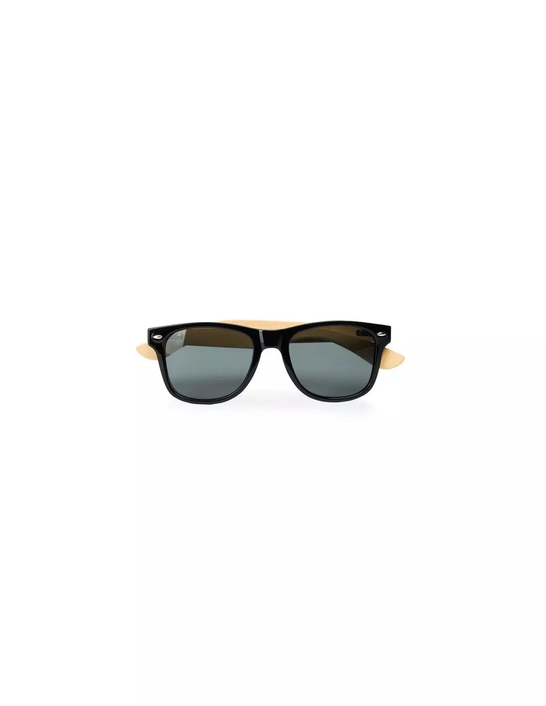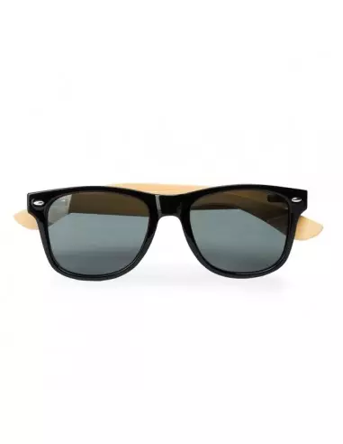 Gafas de sol de atractivo diseño con montura en acabado brillante y patillas en bambú natural. Lentes con protección UV400.