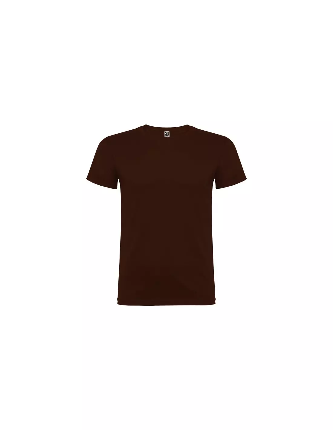 Camiseta de manga corta de cuello redondo doble con elastano, confeccionada en tejido tubular en tallas de adulto, y con costuras laterales en tallas de niño, con cubrecosturas reforzado en cuello.