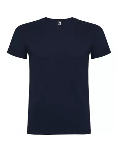 Camiseta de manga corta de cuello redondo doble con elastano, confeccionada en tejido tubular en tallas de adulto, y con costuras laterales en tallas de niño, con cubrecosturas reforzado en cuello.