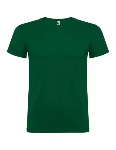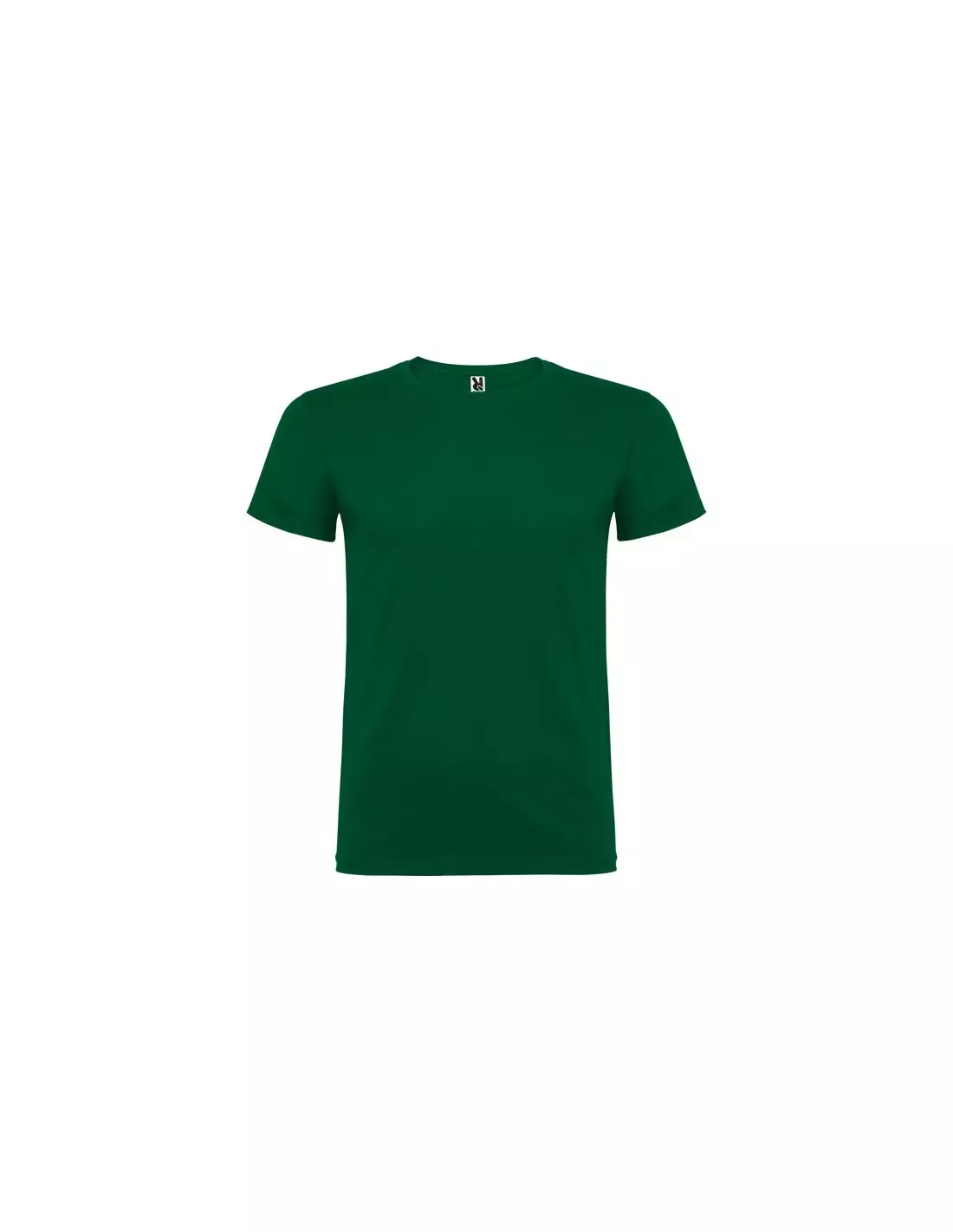 Camiseta de manga corta de cuello redondo doble con elastano, confeccionada en tejido tubular en tallas de adulto, y con costuras laterales en tallas de niño, con cubrecosturas reforzado en cuello.