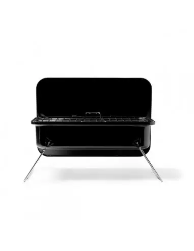 Barbacoa portátil para carbón realizada en acero inoxidable. Plegable con parrilla desmontable.