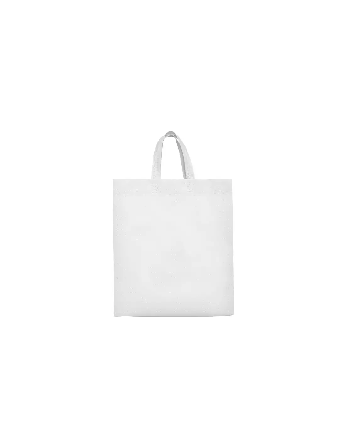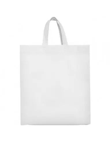 Bolsa termosellada con fuelle en los laterales y en la base, fabricada en tejido non-woven (no tejido), con asa corta de cinta en el mismo color.