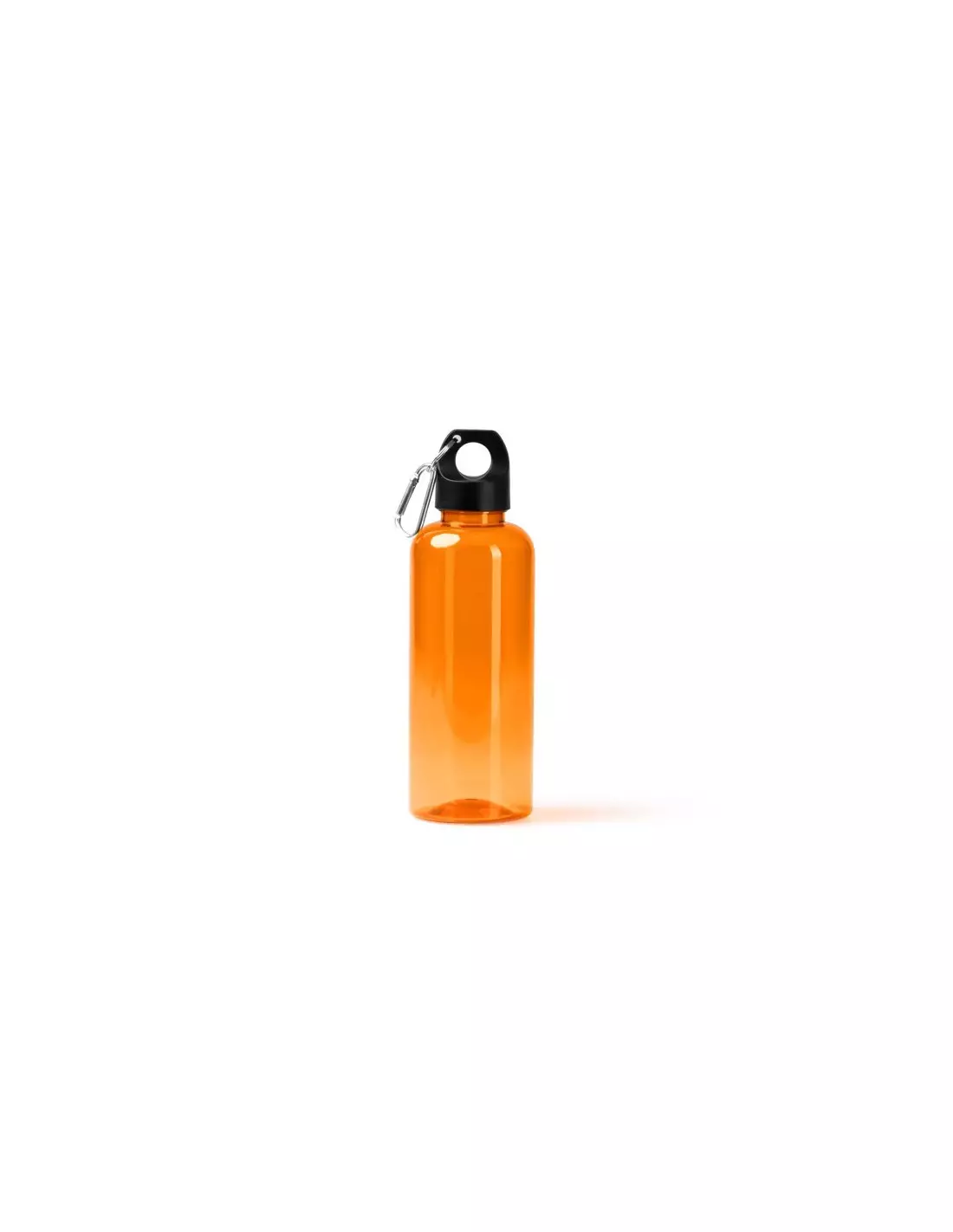 Botella con cuerpo de RPET. Tapa y asa de transporte con mosquetón. Capacidad 580 ml.