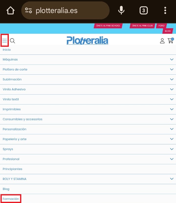 1. Inicia sesión en la web de Plotteralia.** Recuerda que debe ser con el mismo usuario con el que hayas realizado la compra del curso.**
