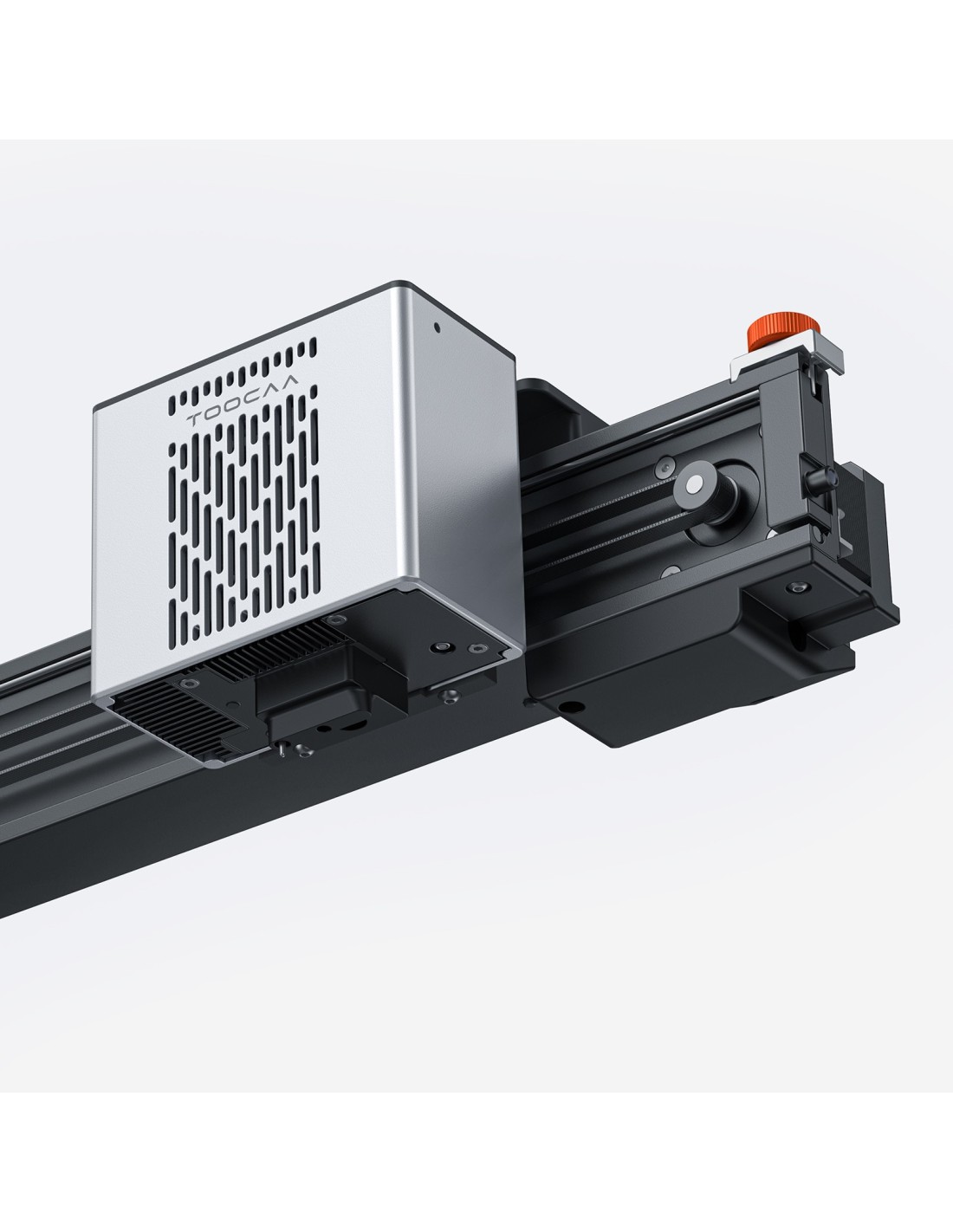 TOOCAA NOVA cuenta con una estructura de rotación de 90° en el eje X , diseñada para el grabado rotatorio, lo que facilita más que nunca el trabajo con objetos redondos como botellas, vasos y frascos . A diferencia de las máquinas tradicionales, no es necesario instalar elevadores adicionales ni ajustar la altura de la máquina al utilizar el módulo rotatorio.