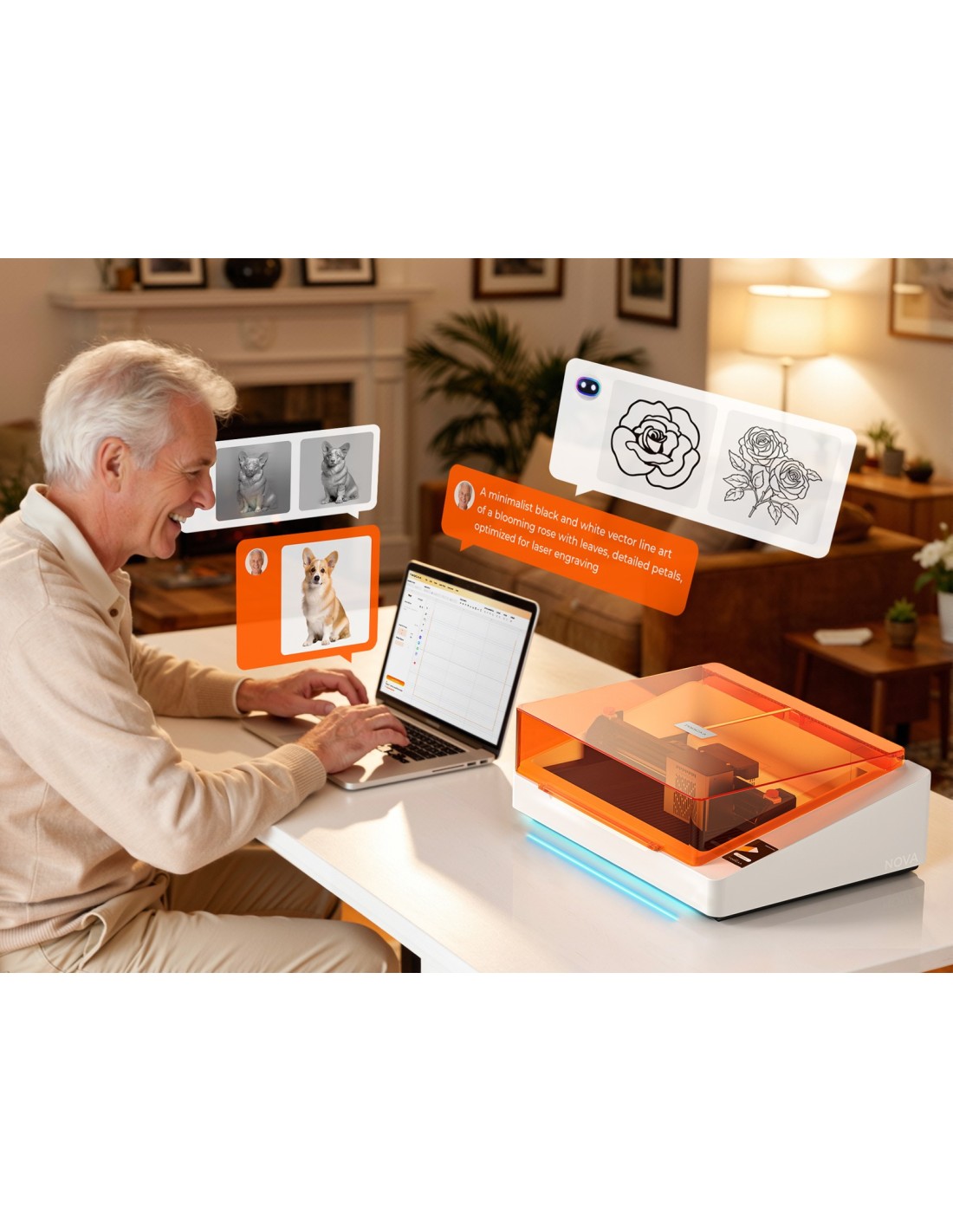 El primer grabador láser con control inteligente impulsado por IA del mundo.