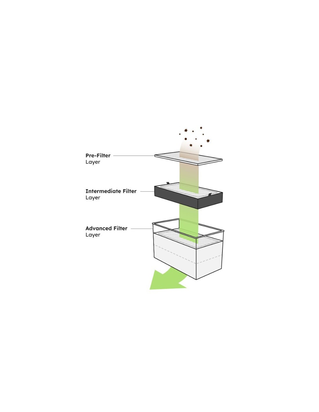 Beam Air Pro emplea un avanzado sistema de filtración de 3 etapas, que incluye capas de prefiltro, filtro intermedio y filtro avanzado.