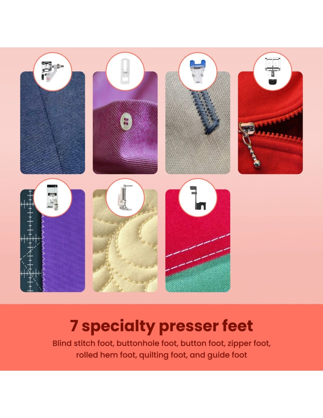 Afrontad cualquier tarea de costura con el amplio juego de prensatelas especializados: