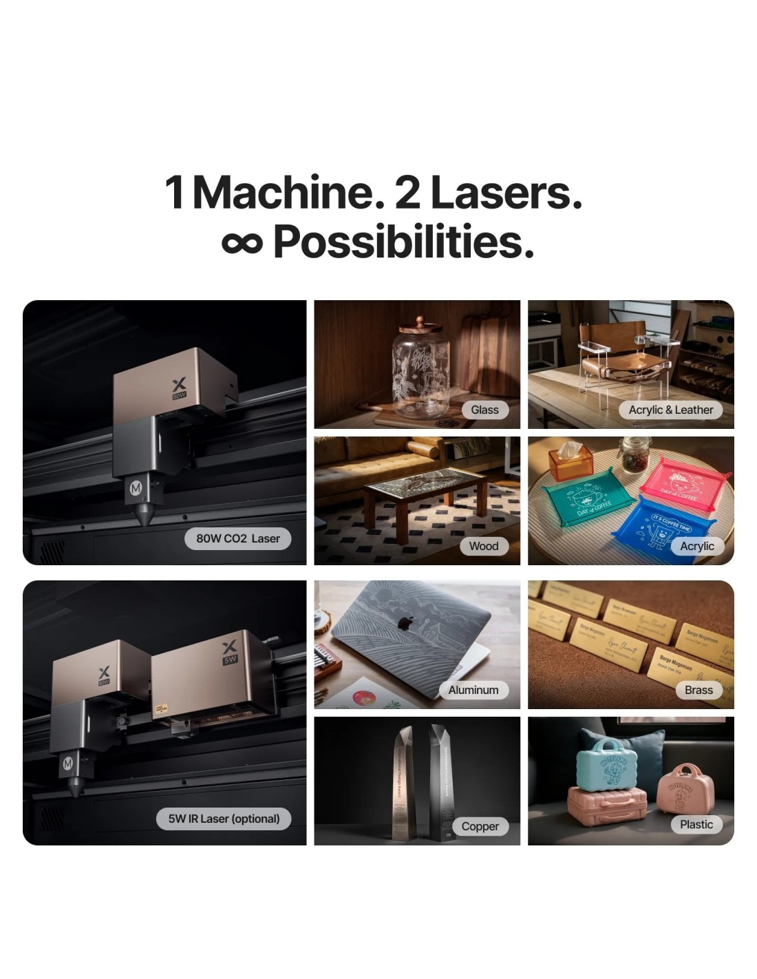 - Tipo de láser: Láser de CO2 de 80 W + láser IR de 5 W (opcional)